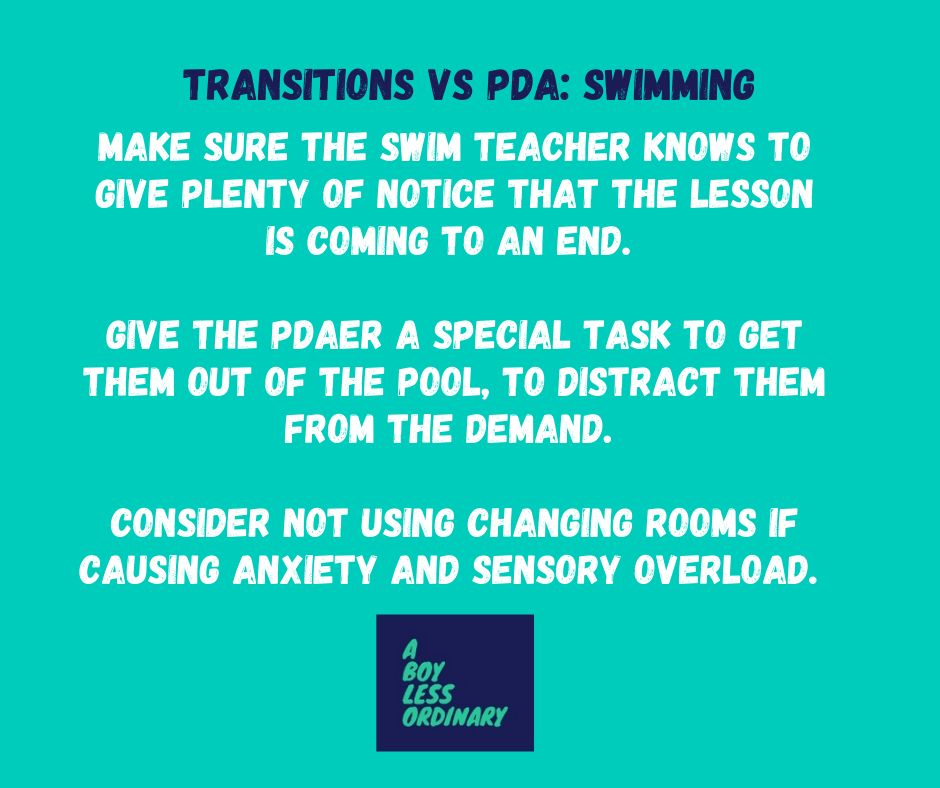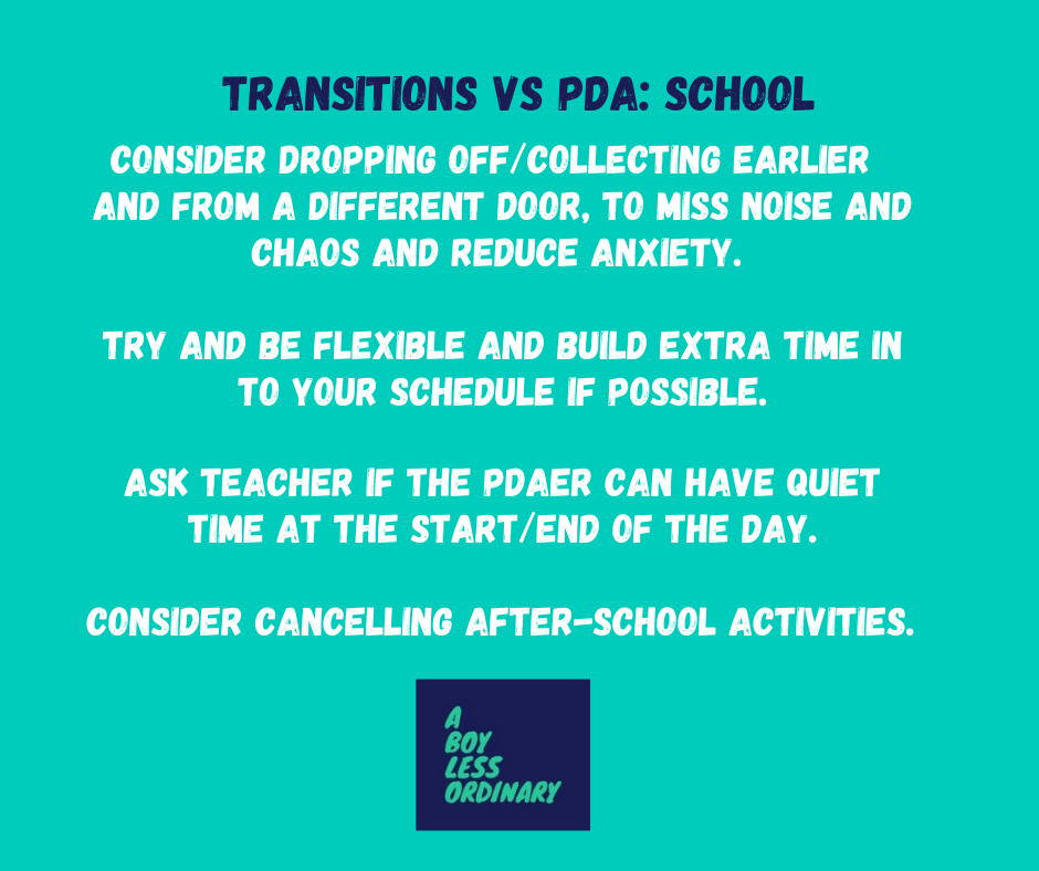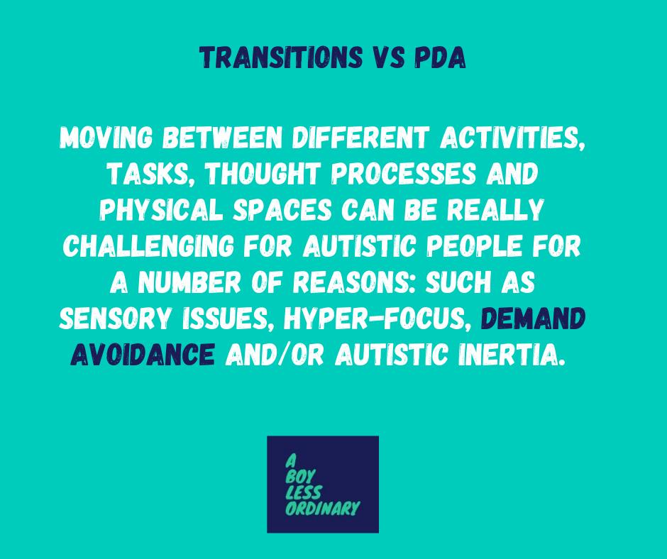 PDAers may find transitions really challenging for may reasons: hyper-focus, sensory challenges, autistic inertia, and of course – demand avoidance…